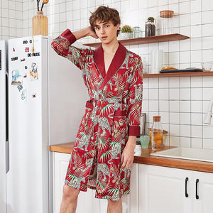 Men Simulation Silk Print Lingerie Robe Bathrobe Dressing Gown koszula nocna chemise de nuit nightgown gecelik negligee $36.95 $73.95