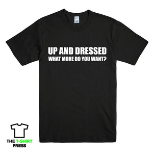 UP AND DRESSED T SHIRT TEE TOP FUNNY LAZY SLOGAN LOVE SLEEP MENS BIRTHDAY GIFT New T Shirts Funny Tops Tee from $35.95 $75.95