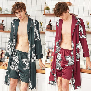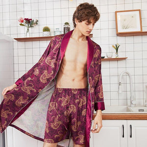 Man Silk Robe Shorts Two Paper Set Thin Section Long Sleeve Pajamas Men's Enlarge Code Bathrobe robes peignoir homme $65.95 $131.95